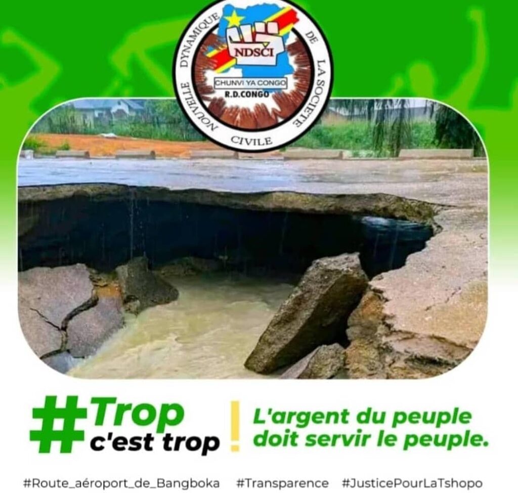 Route de Bangboka : la NDSCI s’engage à sauver la modernisation voulue par le Président Tshisekedi et exige la vérité sur les 22,6 millions USD