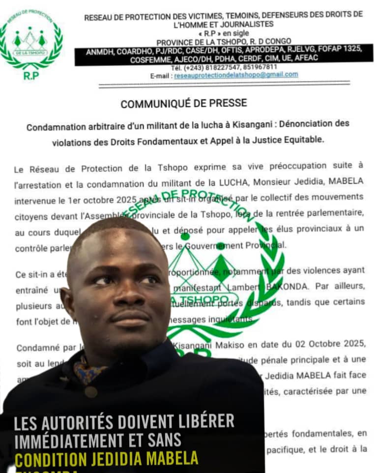 Tshopo : Le Réseau de Protection dénonce les graves atteintes aux libertés et exige un procès équitable pour Jedidia Mabela