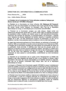 Le Président de la Commission a également mis en garde contre l’extension du théâtre des hostilités à des villes éloignées des lignes de front, une évolution qu’il a qualifiée de hautement dangereuse, tant pour la stabilité nationale et régionale que pour la sécurité des populations. Une telle escalade, a-t-il prévenu, compromet gravement les efforts de paix en cours.